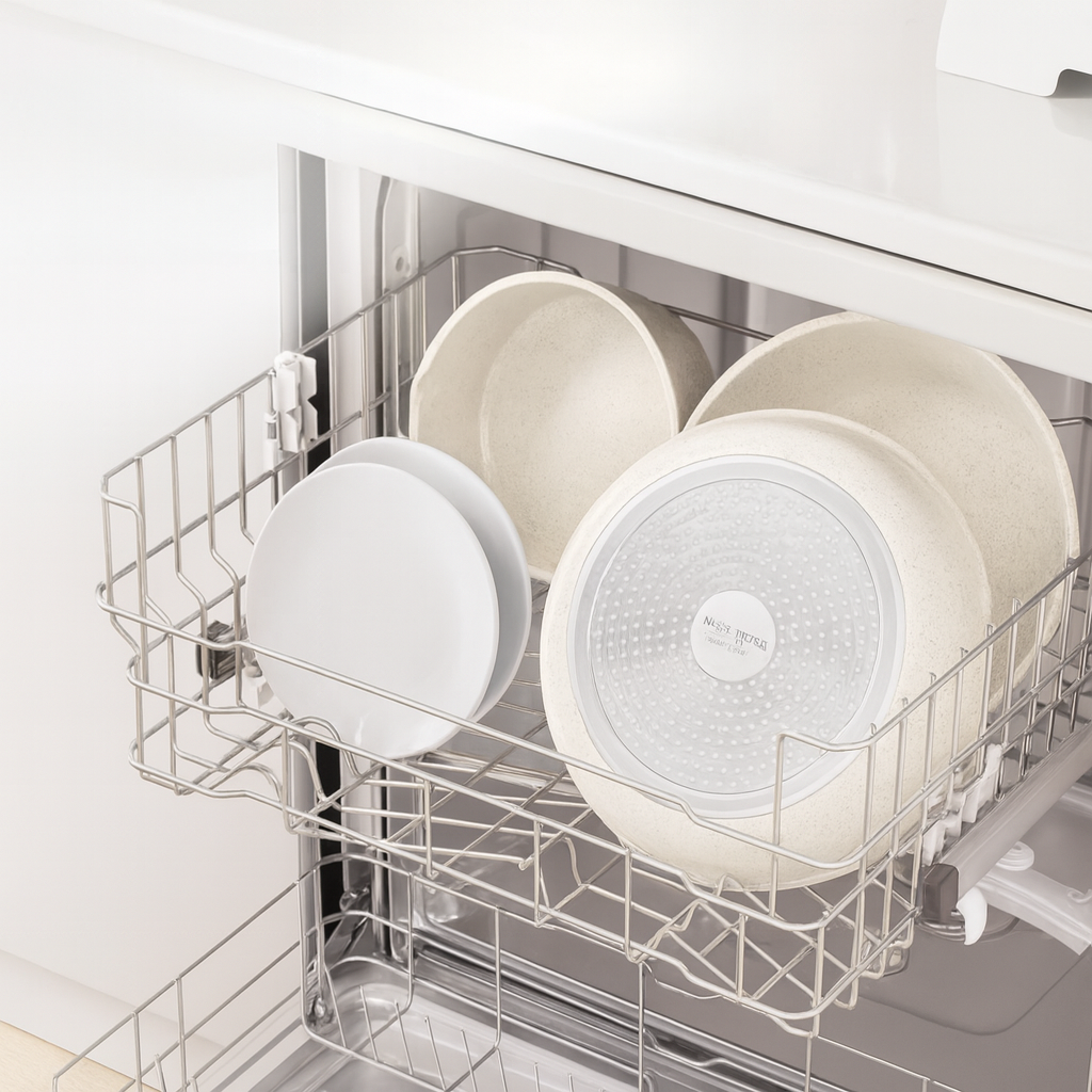 Det gör rengöringen enkel och sparar både tid och vatten. Dessutom är alla delar diskmaskinssäkra.